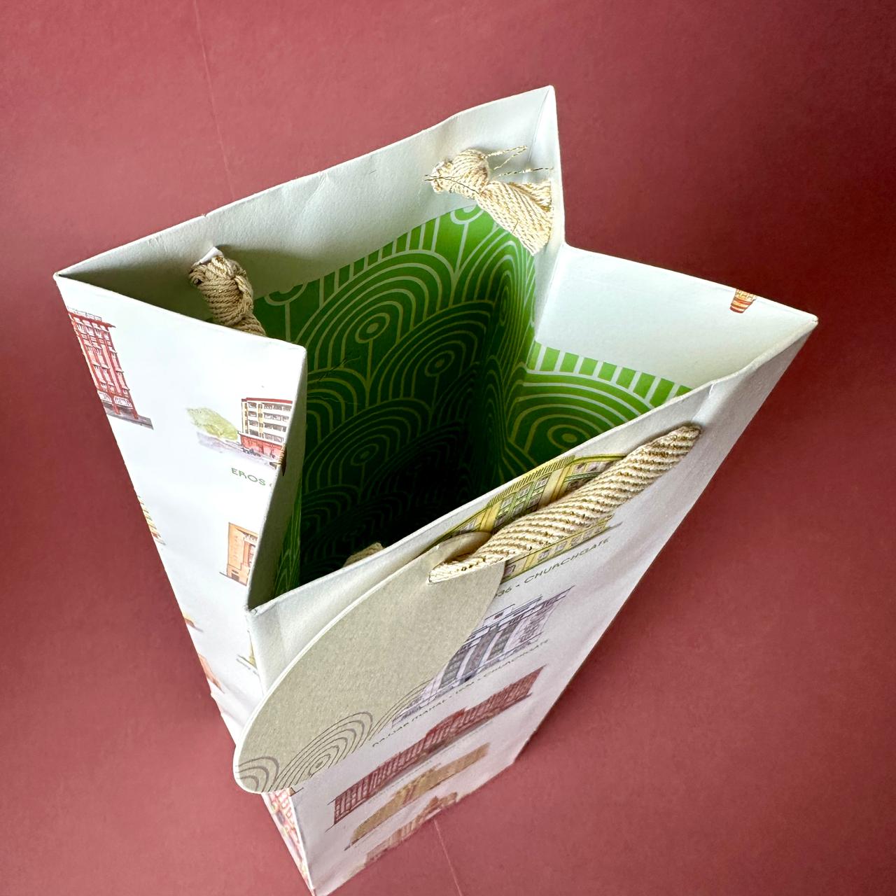 - Set of 4 bags with metallic ribbon handle and 12 printed tissues