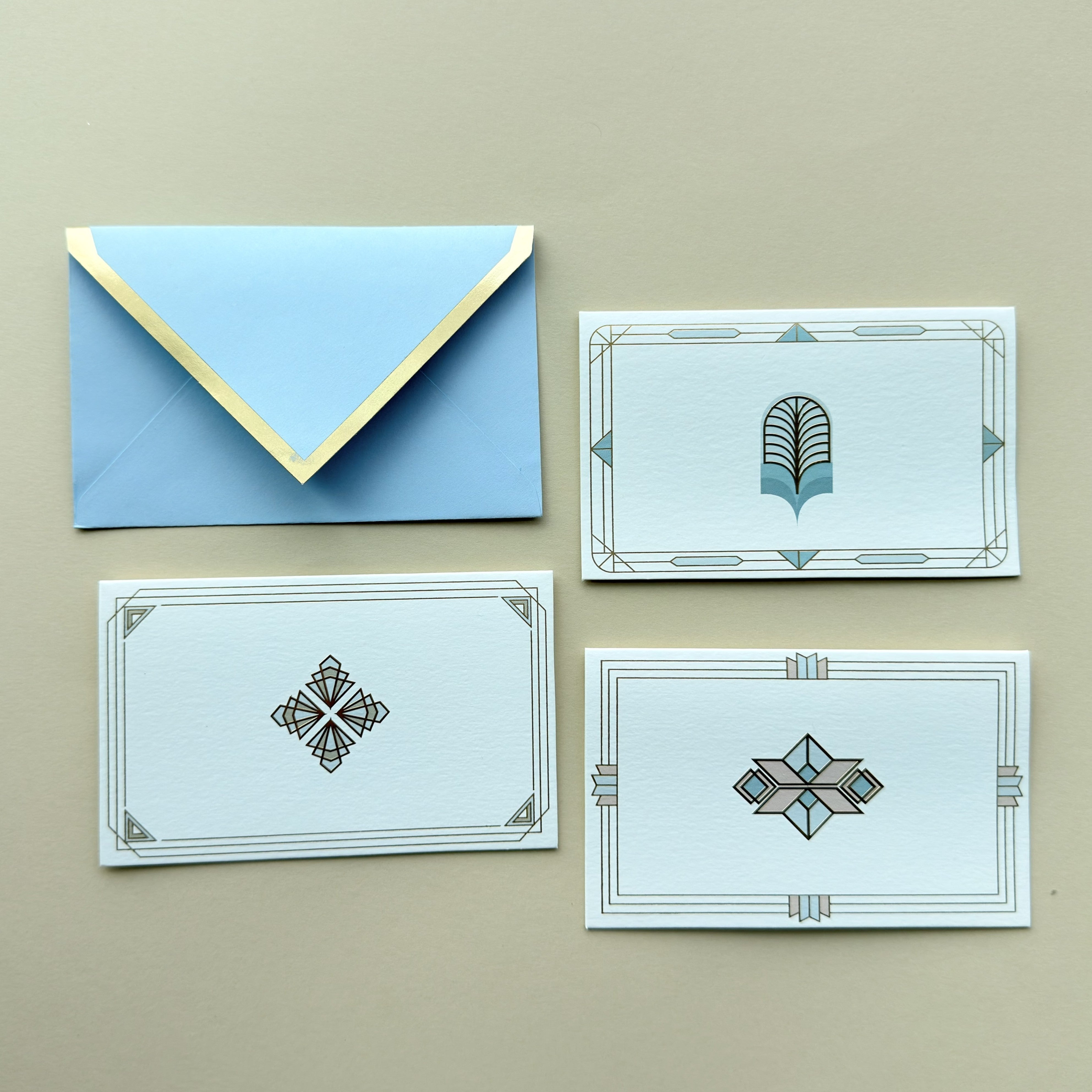 - Set of 12 folded cards with printed lined envelopes, 12 seals
