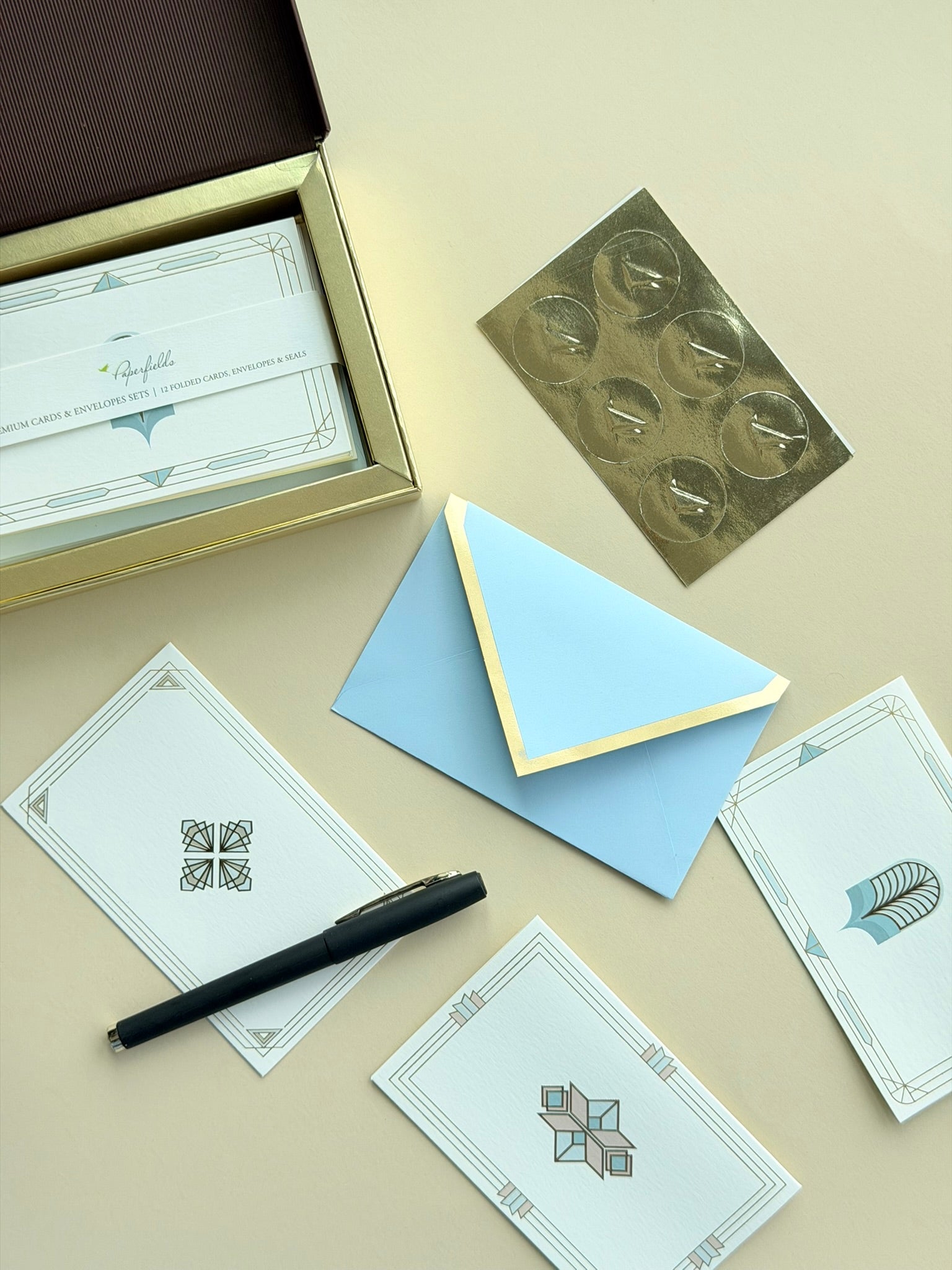 - Gold embossed seals to close the envelopes